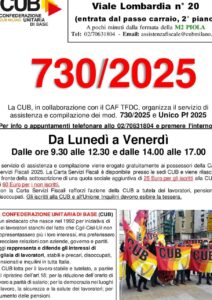 Martedì 29 aprile 2025 ore 18:00 presso la sede della CUB Milano in viale Lombardia 20.