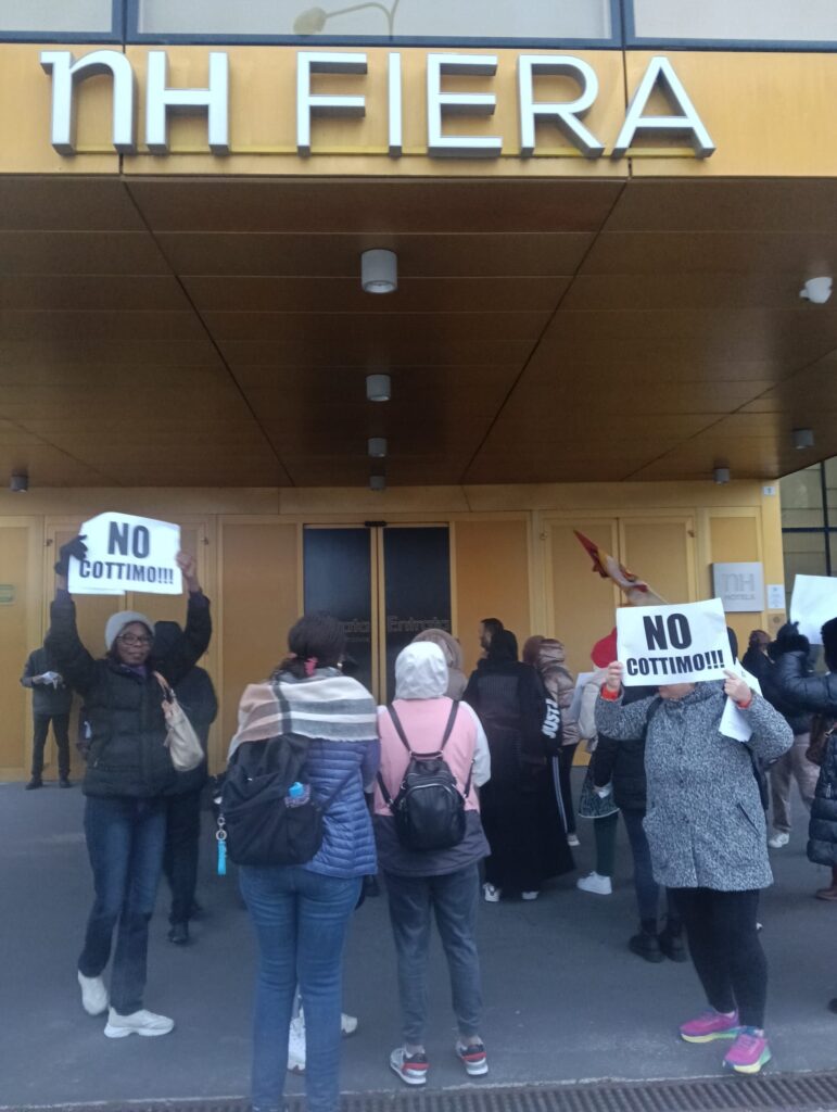 Questa mattina le lavoratrici e i lavoratori che lavorano presso i servizi di pulizia, facchinaggio e ristorazione dell’Hotel NH Milano Fiera di Rho hanno scioperato contro il lavoro organizzato a cottimo integrale.